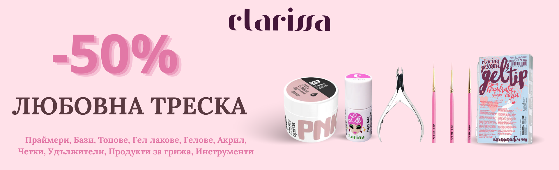 - UV/LED гел Clarissa Fiber Glass Builder Gel OPTIMA Cover Nude Pink 50 gПромо цена 30,42 € / 59,50 лв. Редовна цена 60,84 € / 118,99 лв.